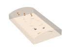 - Flesh toned and curved with a contour that mimics patients.