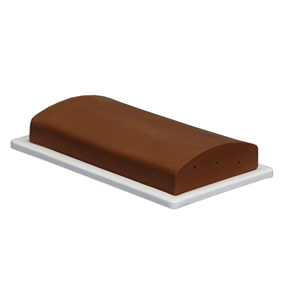 The curved contour on the top of the ultrasound training phantom is similar to contours on patients and has the added benefit of showing the importance of transducer positioning, as positioning can affect the quality of the image viewed–this is not possible on phantoms that are flat. This phantom can be imaged and accessed from the top, side or bottom surface, on the base, or removed from the case.