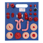 0305 Otto Ostomy™ Stomas Package includes the following 18 stomas: 7/8″, 2″, Urostomy with 3″ stents, Loop with Rod, Loop without Rod, Double Barrel, In-Skin Fold, Parastomal Hernia, 3″, Oval, Necrotic, Granuloma, Mushroom, Prolapsed, Ischemic, Flush, Mucocutaneous Separation, and Recessed. Additional parts included are: Small Intestinal Segment, Ileostomy and Colostomy Loop Adaptors, and Ileal Conduit.